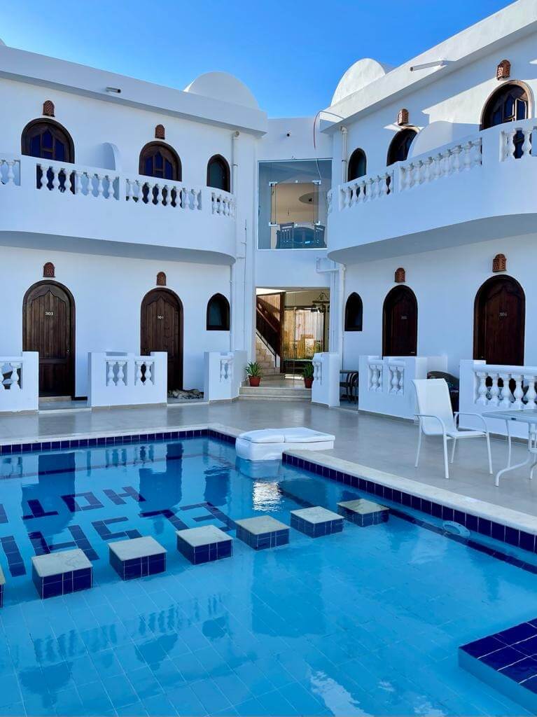 Dahab egy kis város a Vörös-tenger partján, amely nyugodt légkörével és lenyűgöző merülőhelyeivel vonzza a világ minden tájáról érkező látogatókat. Olyan ikonikus helyszínek, mint a Blue Hole és a Canyon egyedülálló élményt kínálnak mind a kezdő, mind a tapasztalt búvároknak. A város bámulatos korallzátonyai mellett, a fenntarthatóság iránti elkötelezettsége is különleges – számos program segíti a zátonyok és tengeri élővilág megőrzését.